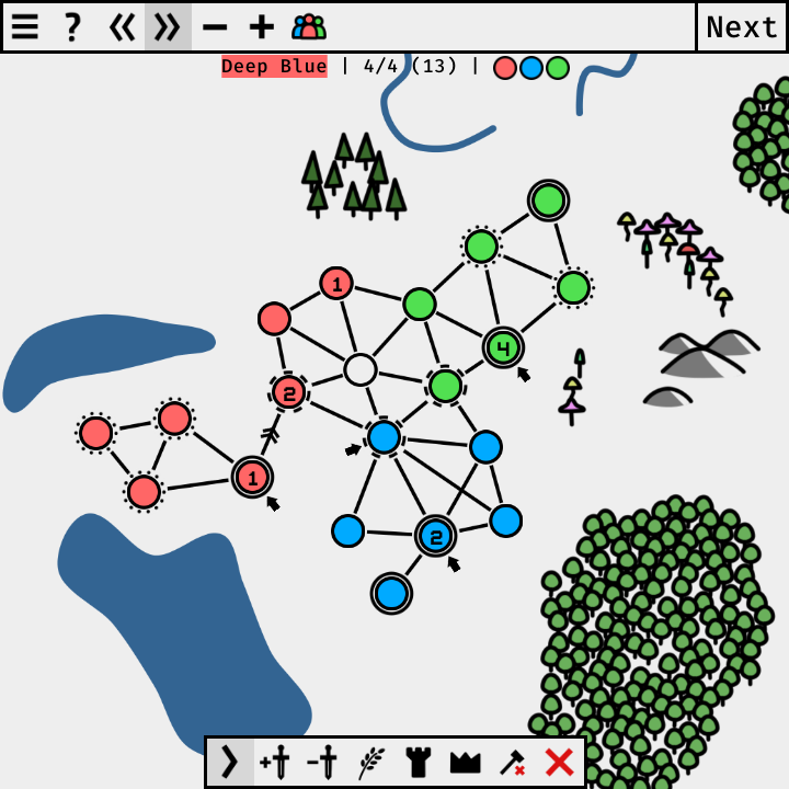 Grrra is a free-to-play, simple strategy game for up to 6 players, which you can play with AI or online with your friends. The game is played in simultaneous turns: players plan their actions at once without knowing what others will do. The goal of the game is to gain power over the generated map. Currently, the game has two game modes: Classic and Cities.